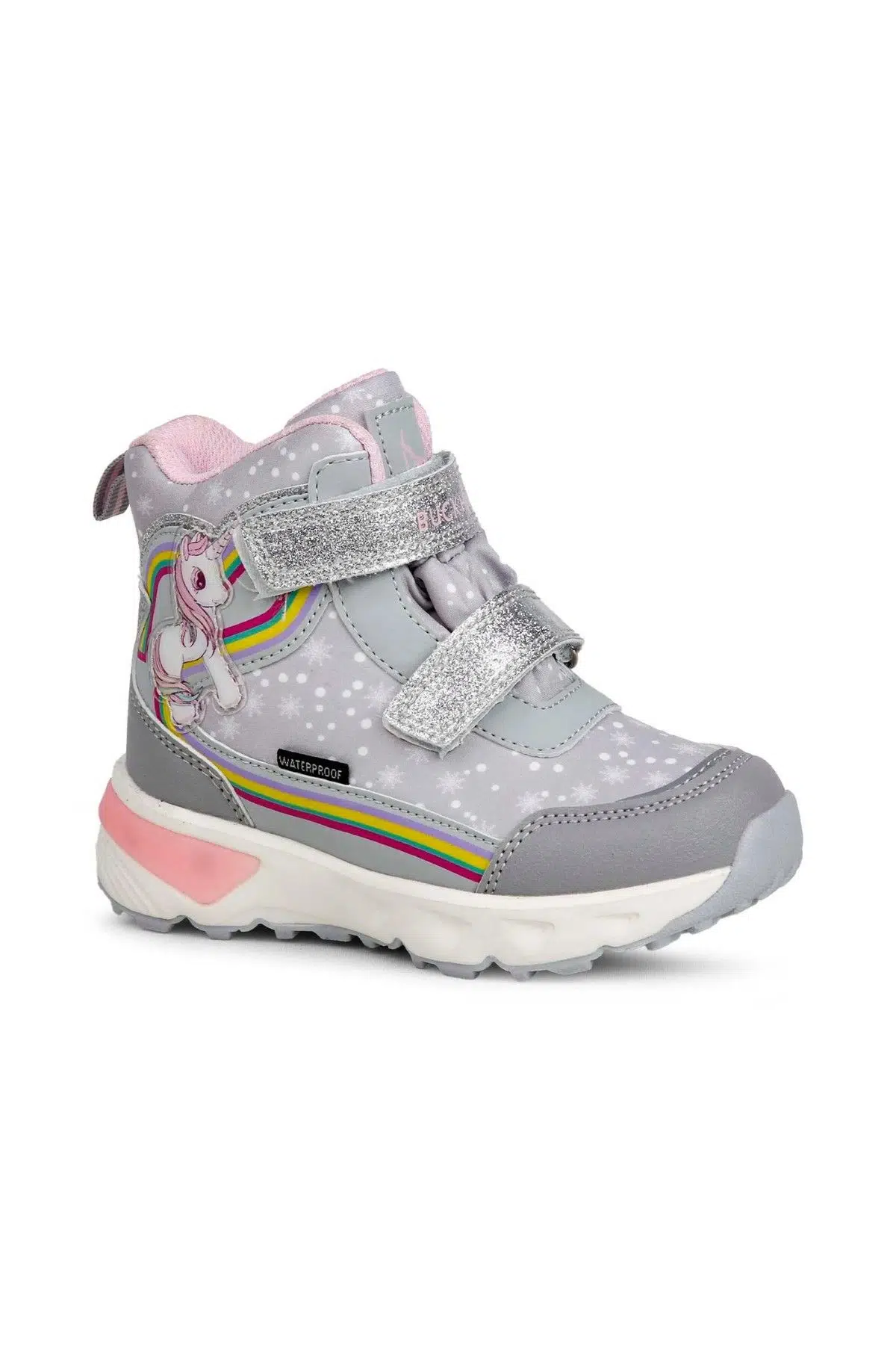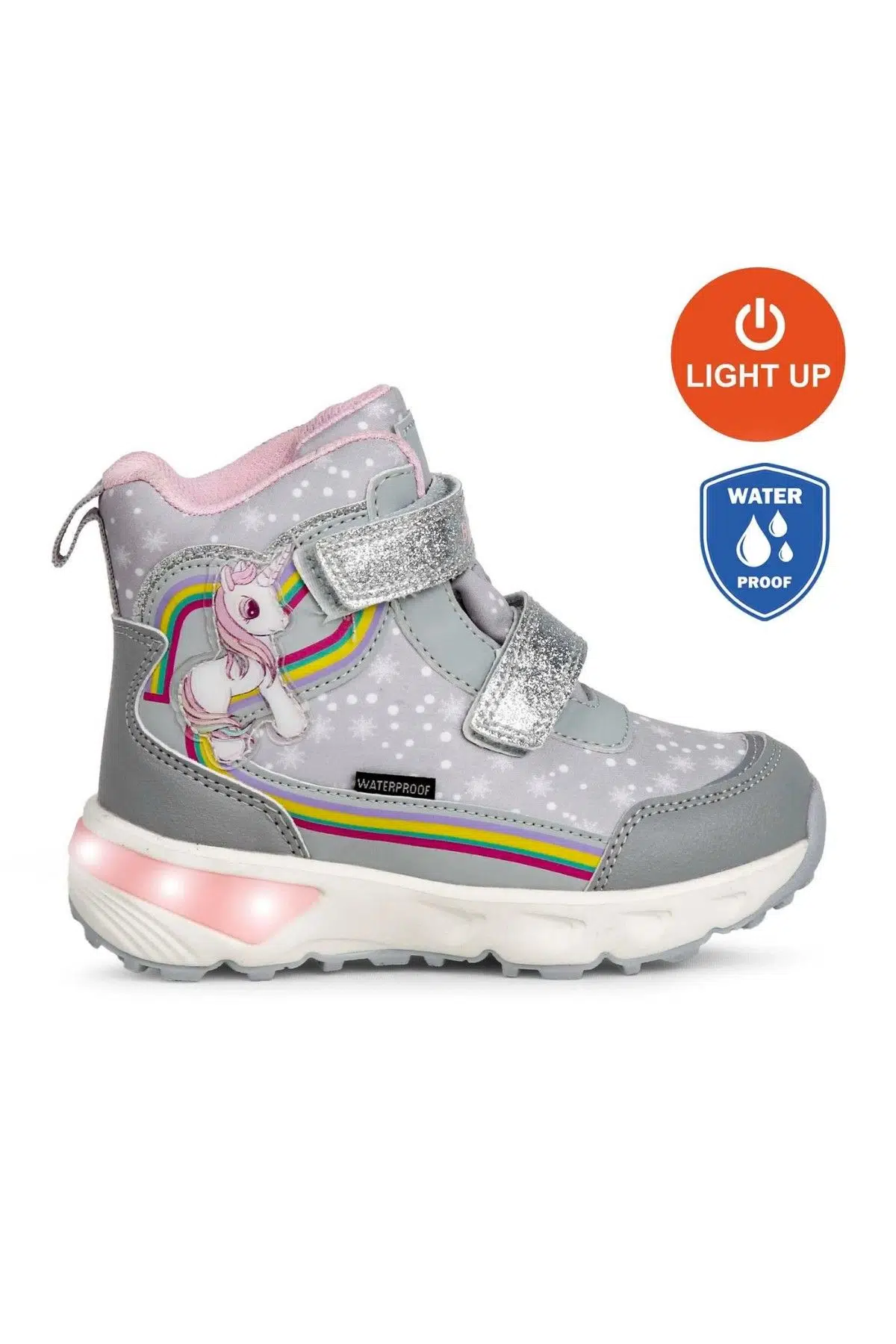 UNICORNIE kız çocuk modasının uyumlu tonları.Ayak tabanının şeklini alan Flex Foam özel iç ped ile size özel yürüyüş konforu sağlar. Özel ışıklı tabanı ile çocuklar için zarif ve ışıltılı adımlar.Waterproof membran sayesinde kısa süreli suyla temasa karşı ayakları korur.
